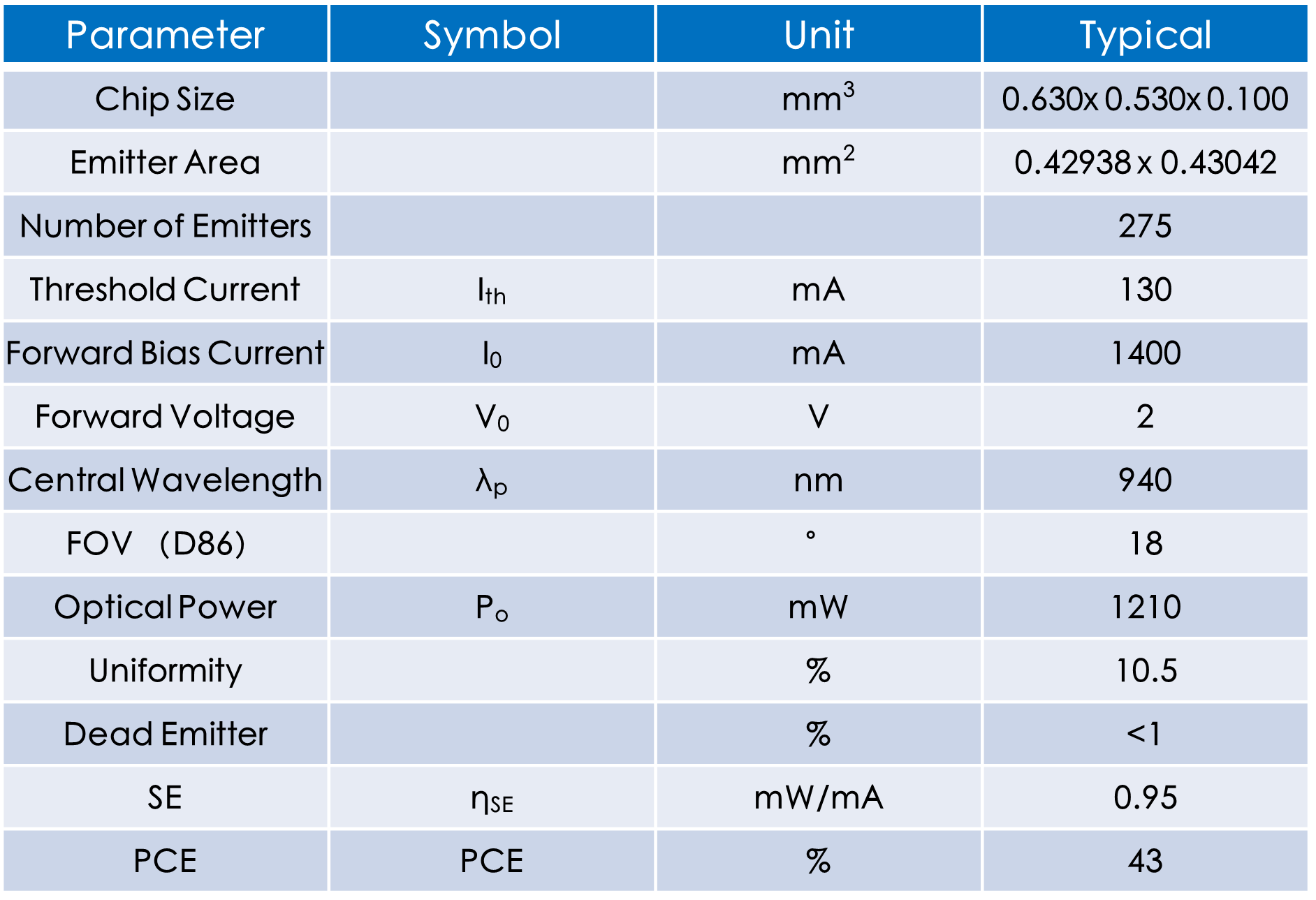 非規則陣列940nm VCSEL 功率:1.2W PCE:43% 可定制pattern開發