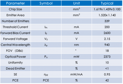 Rule Array 940nm VCSELs Power: 2.3W PCE: 42%