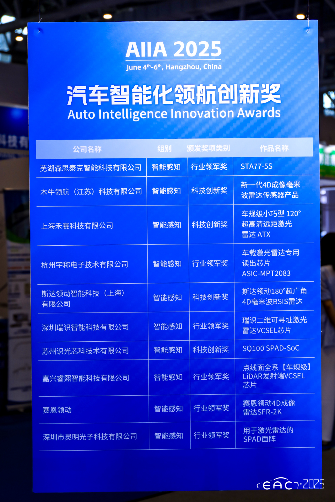 Raysea Technology won the Auto Intelligence Innovation Awards 2025 – Intelligent Perception Industry Leading Award